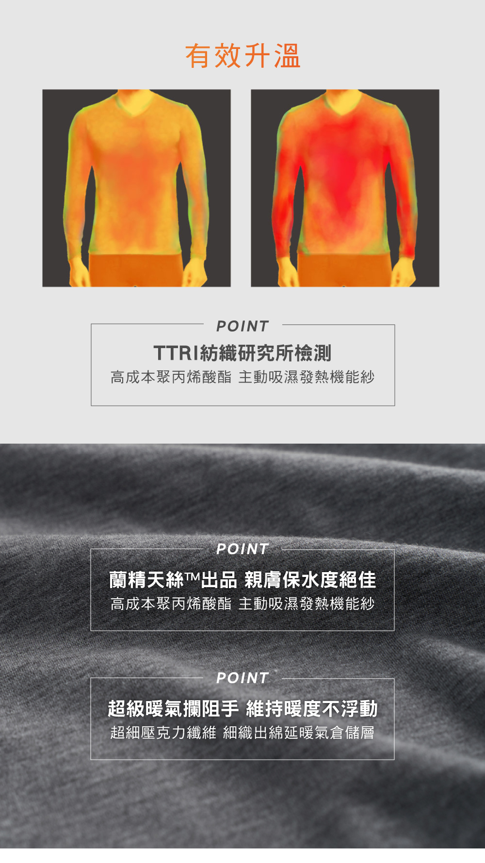 ■ 穿著時能主動吸濕發熱,TTRI實測有效升溫