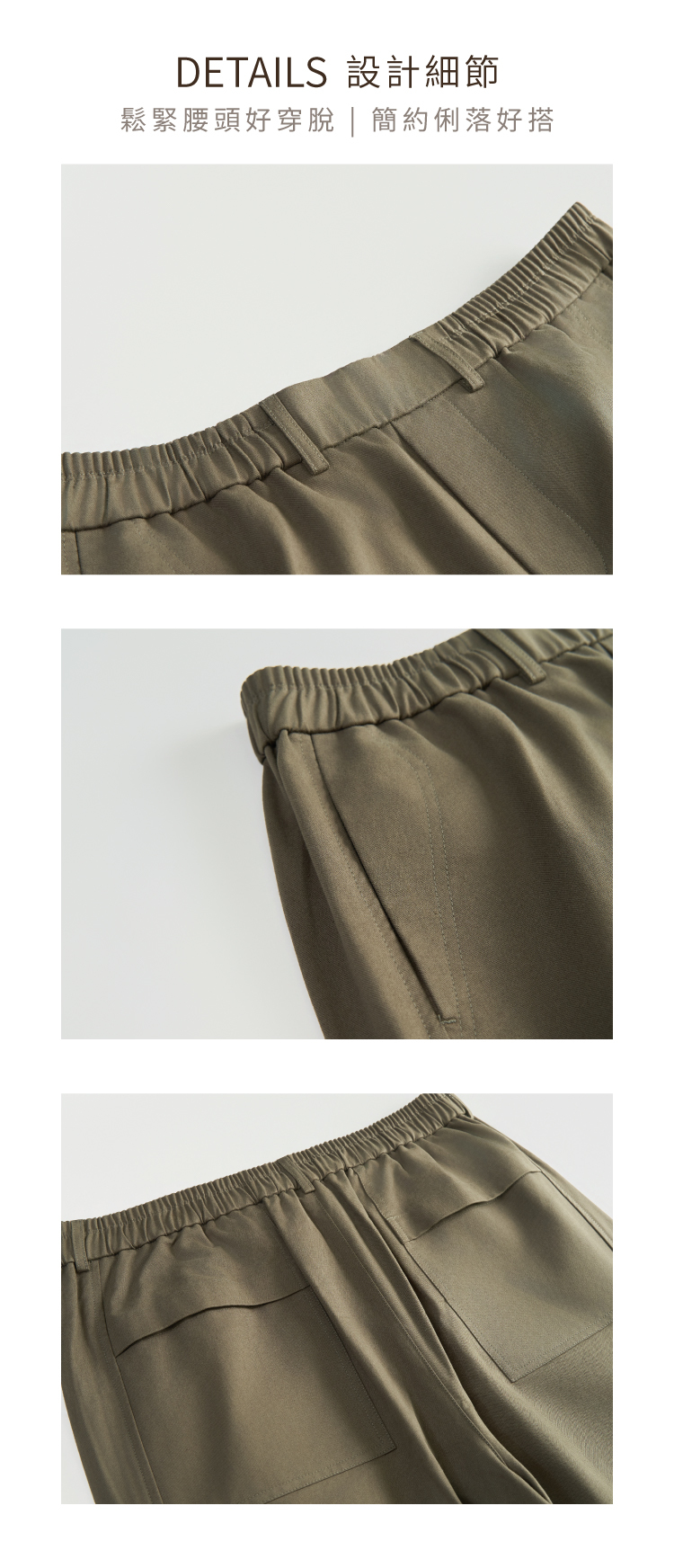 ■ 鬆緊腰頭設計,雙側附便利口袋