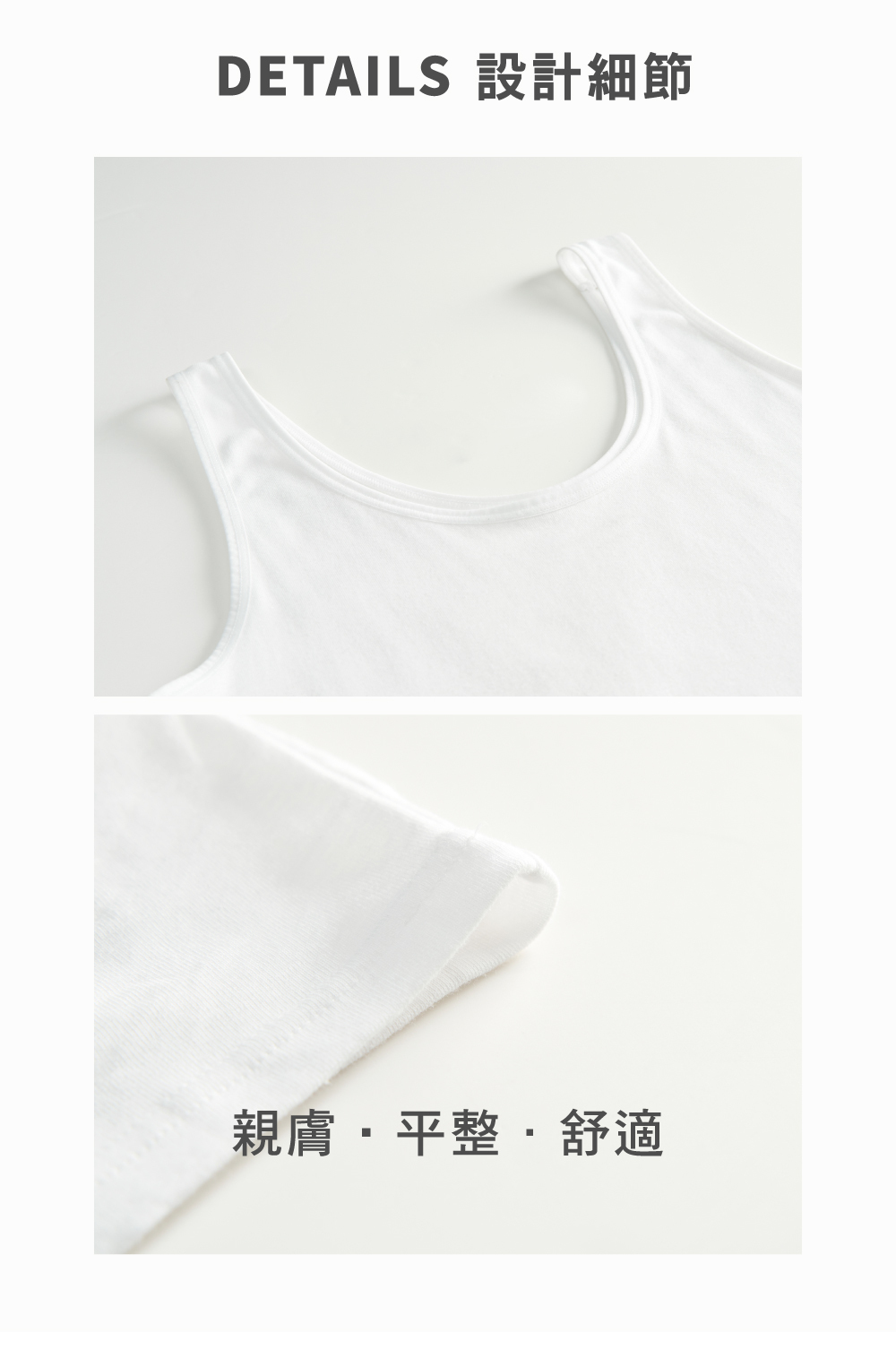 ■ 羅紋彈性織法,更加清爽輕盈,減低濕黏不適
