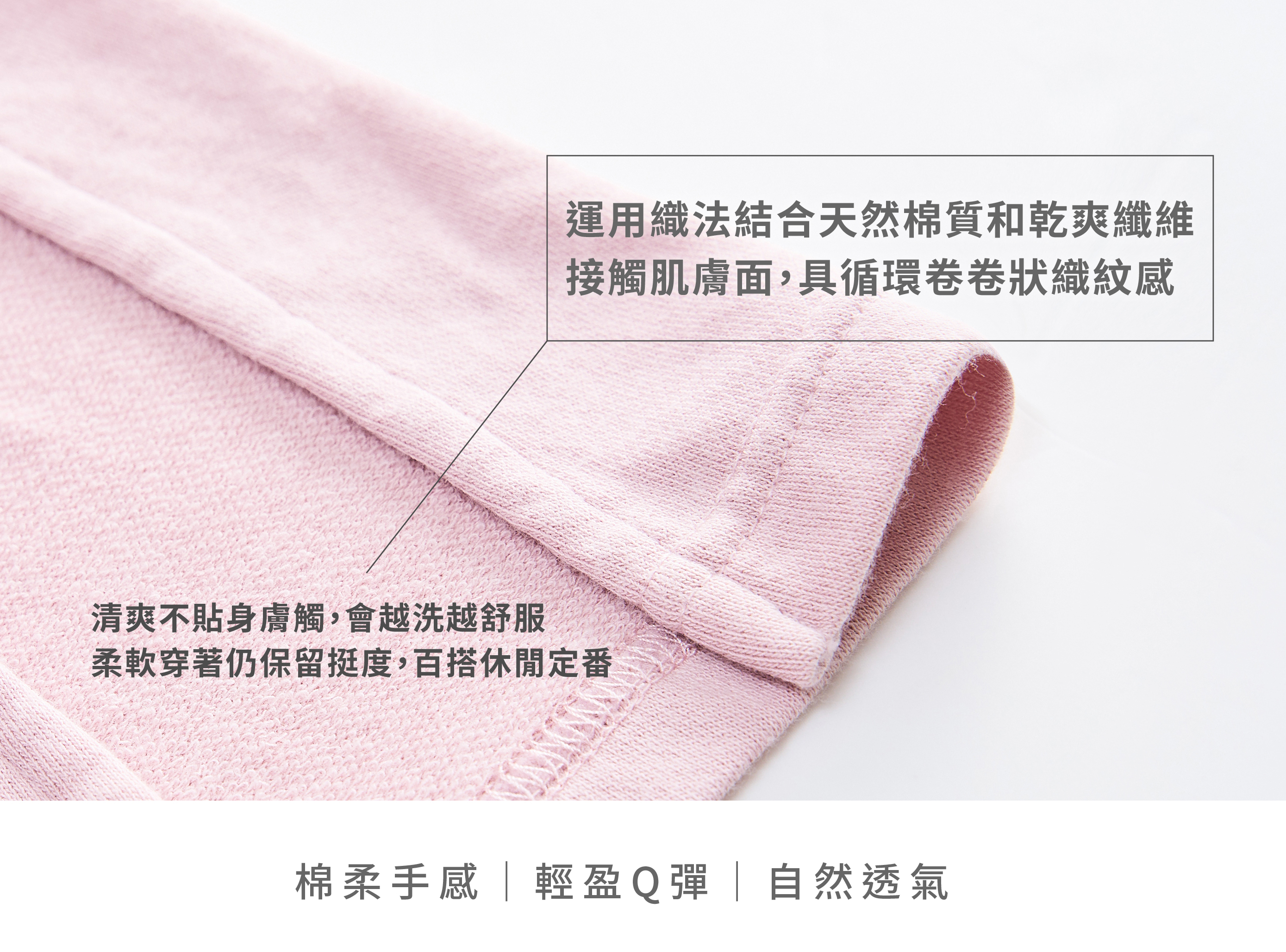 ■ 雙面不同織紋面料,表層柔軟平順帶有花紗紋