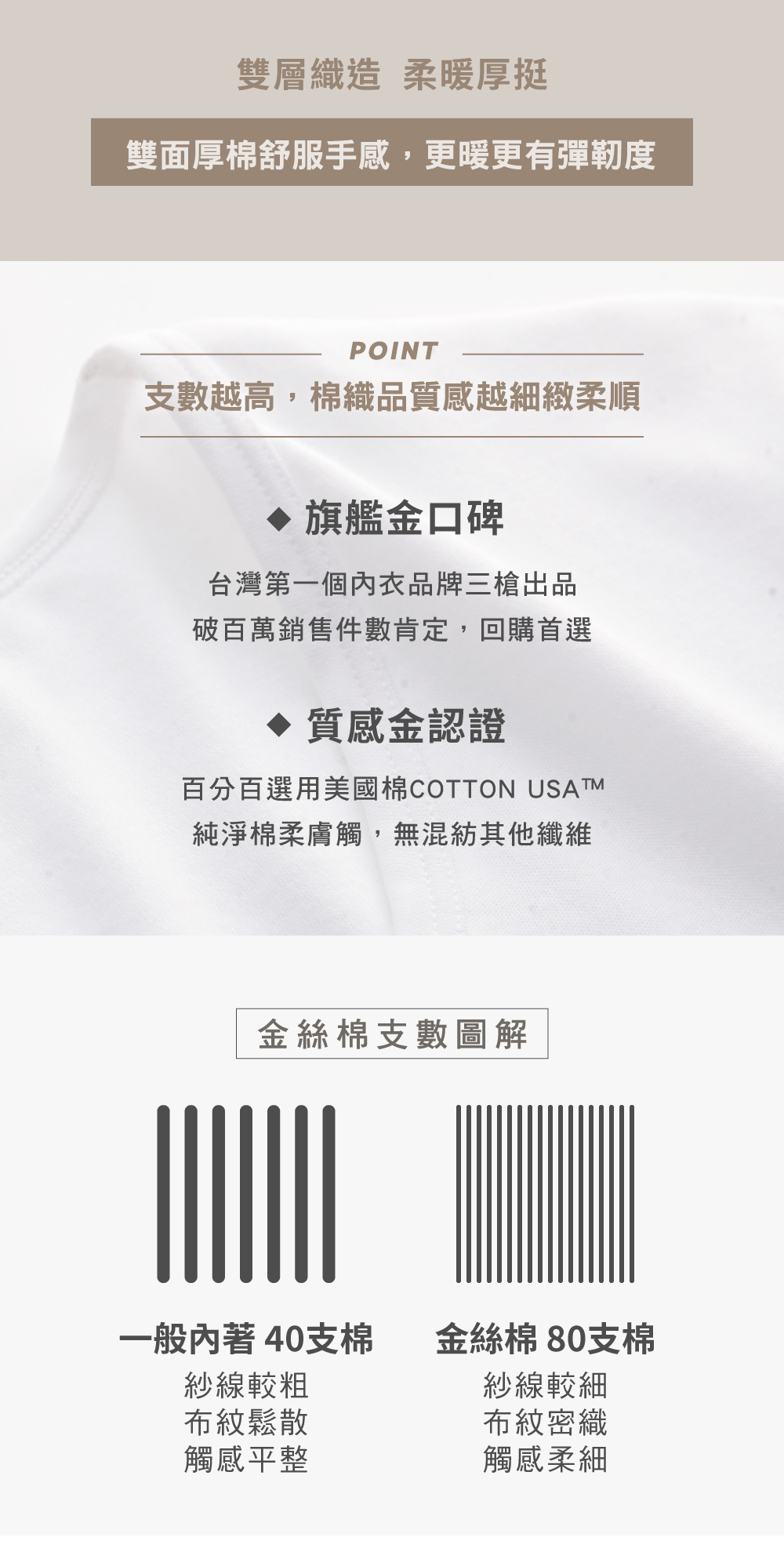 ■ 市面少有80支棉雙層密織,加倍保暖厚棉舒適